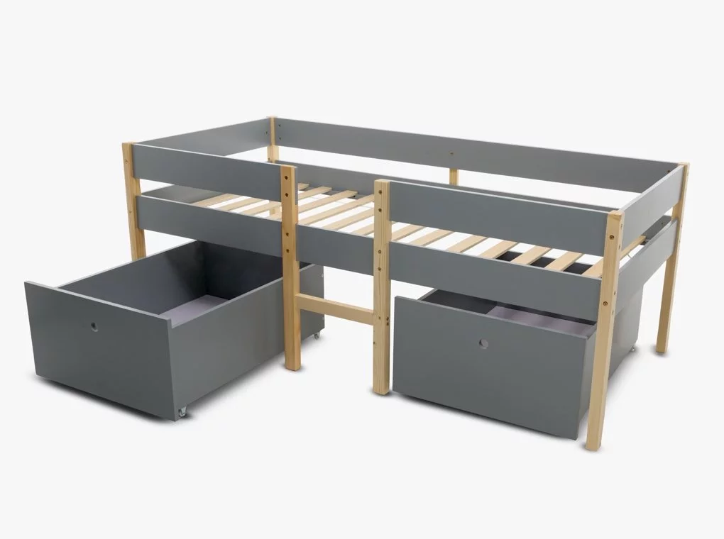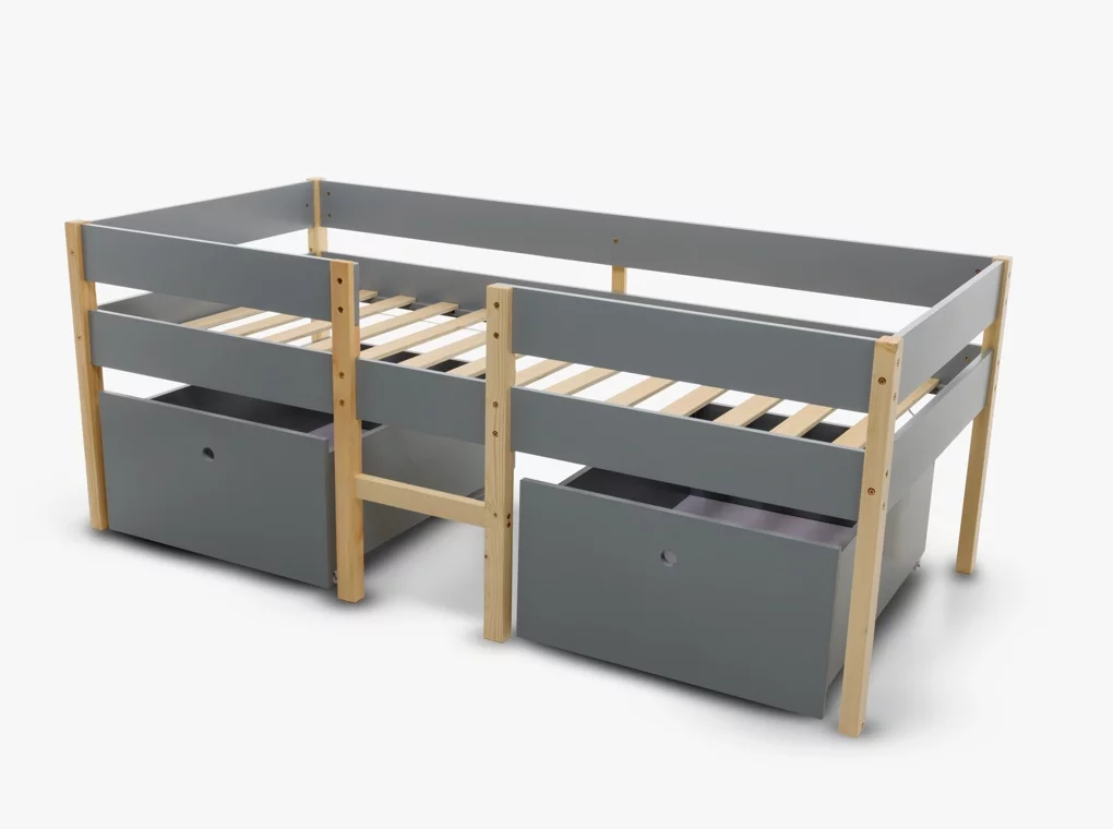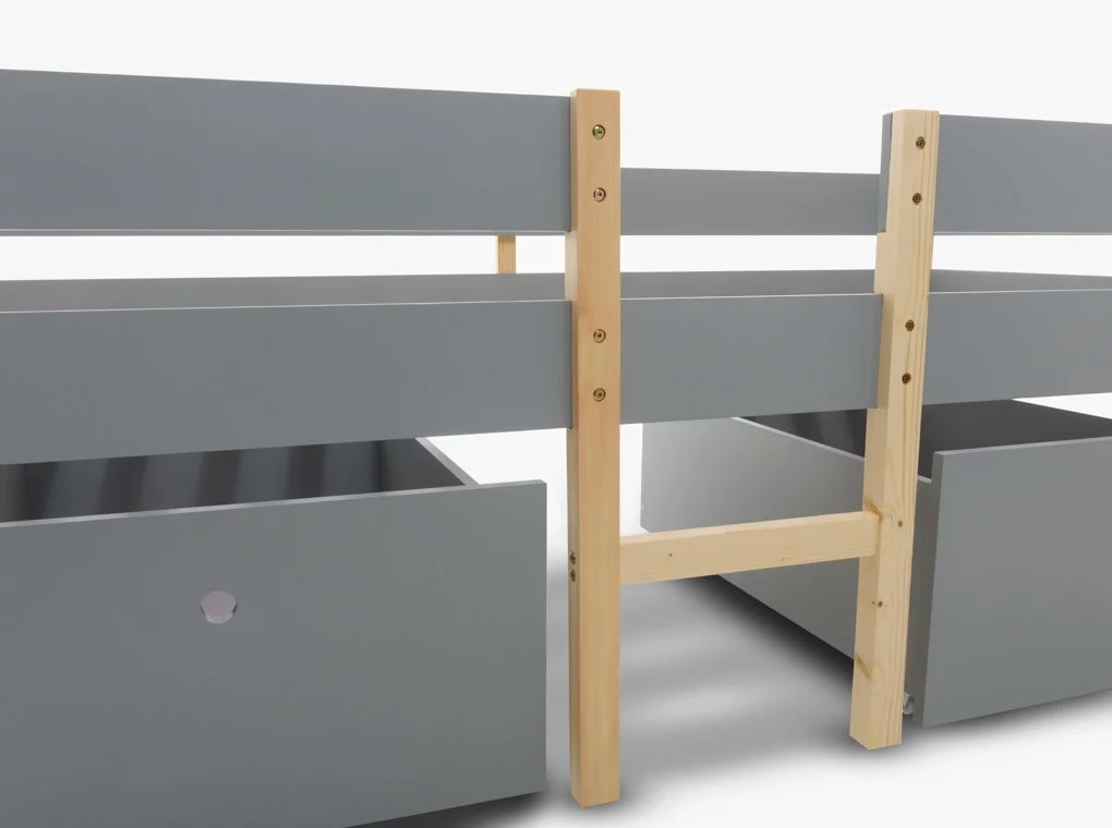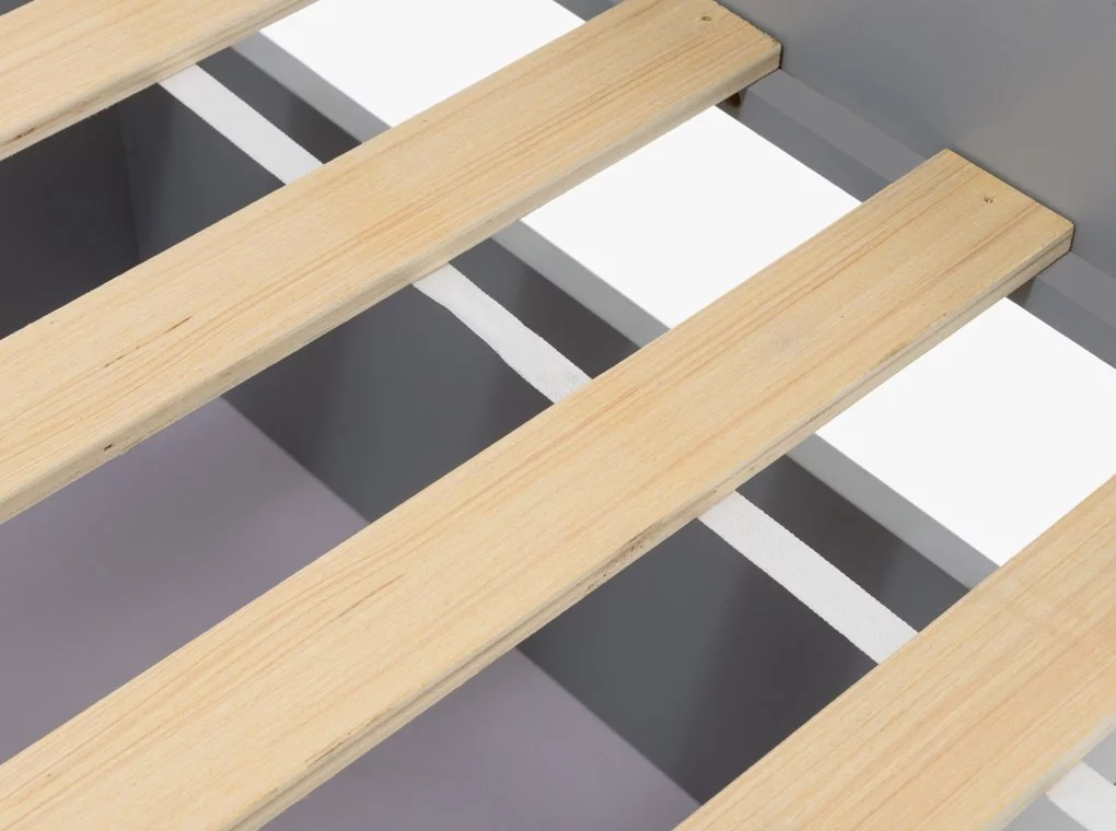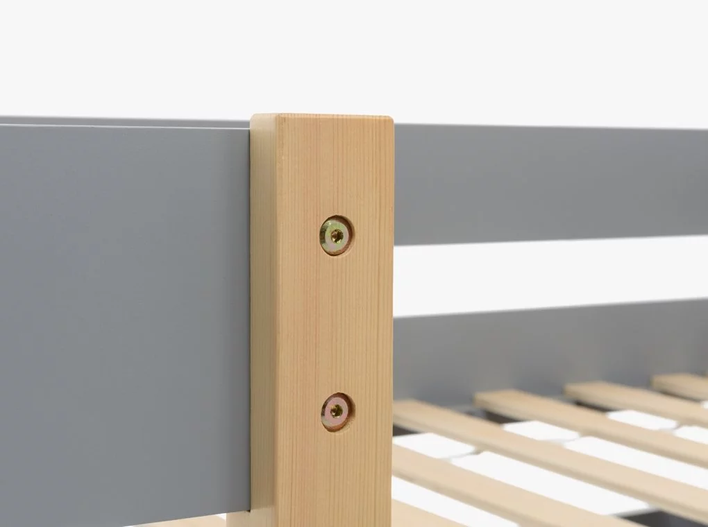 Tömör fenyőből készült ifjúsági ágykeret, szürke/natúr színben.