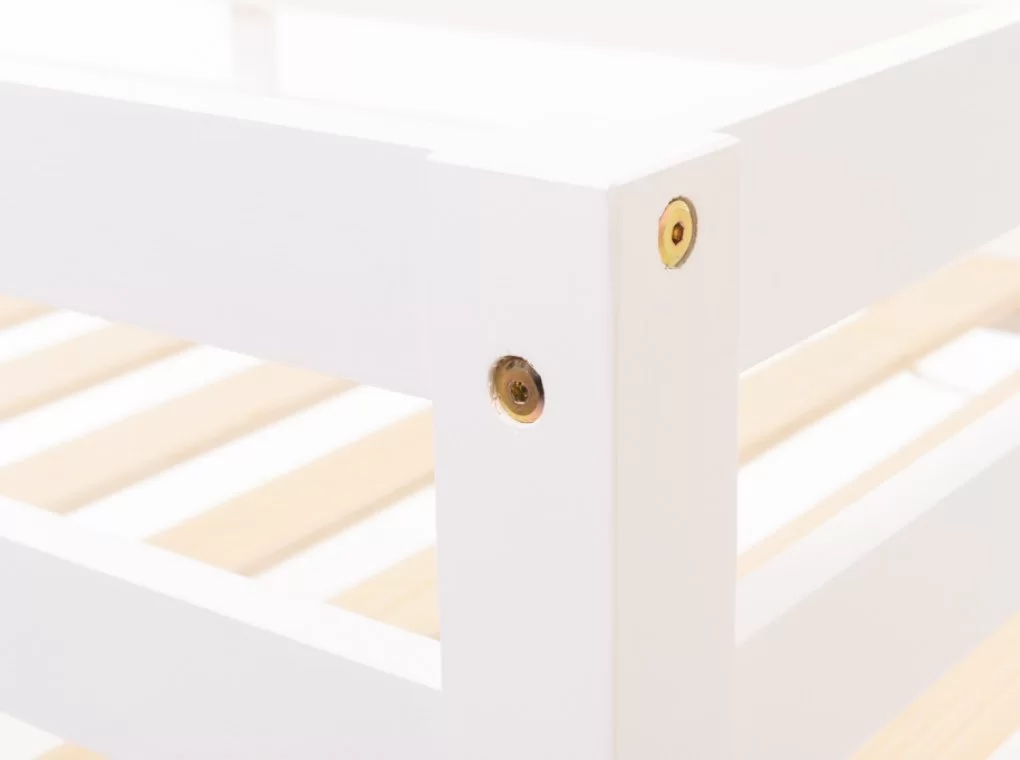 Tömör fenyő emeletes ágy, fehér festéssel.