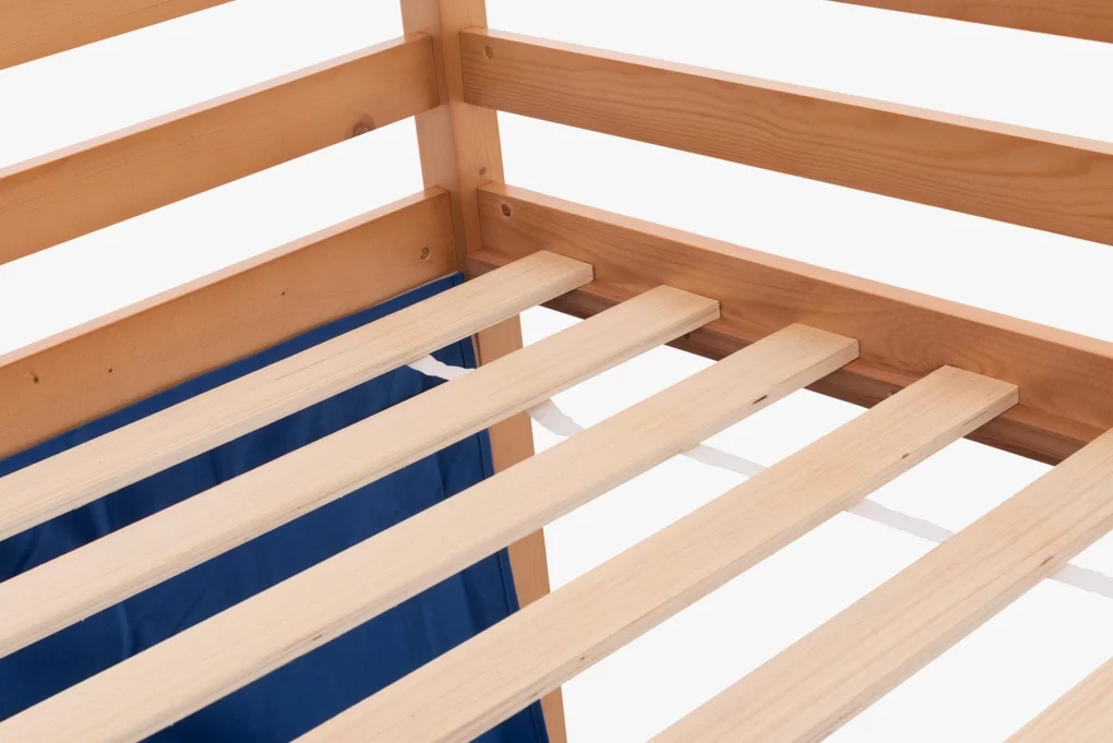✔Tömör fenyőből készült natúr ifjúsági ágykeret, ágyráccsal.