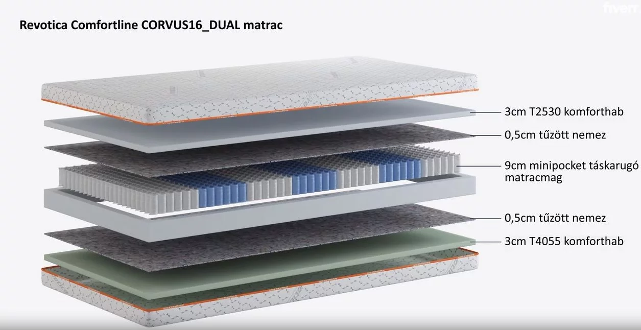 ✔ 16 cm vastag - különleges minipocket táskarugós szerkezetű matracmaggal, két oldala kétféle keménységgel.