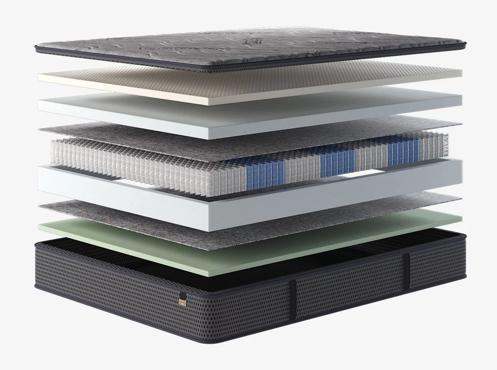 A matrac felső huzata double jacquard technológával számítógépvezérelt körkötőgépen készülő GRAPHENE huzat, melybe 400 gr/nm vastagságú töltővlies-t steppelünk.