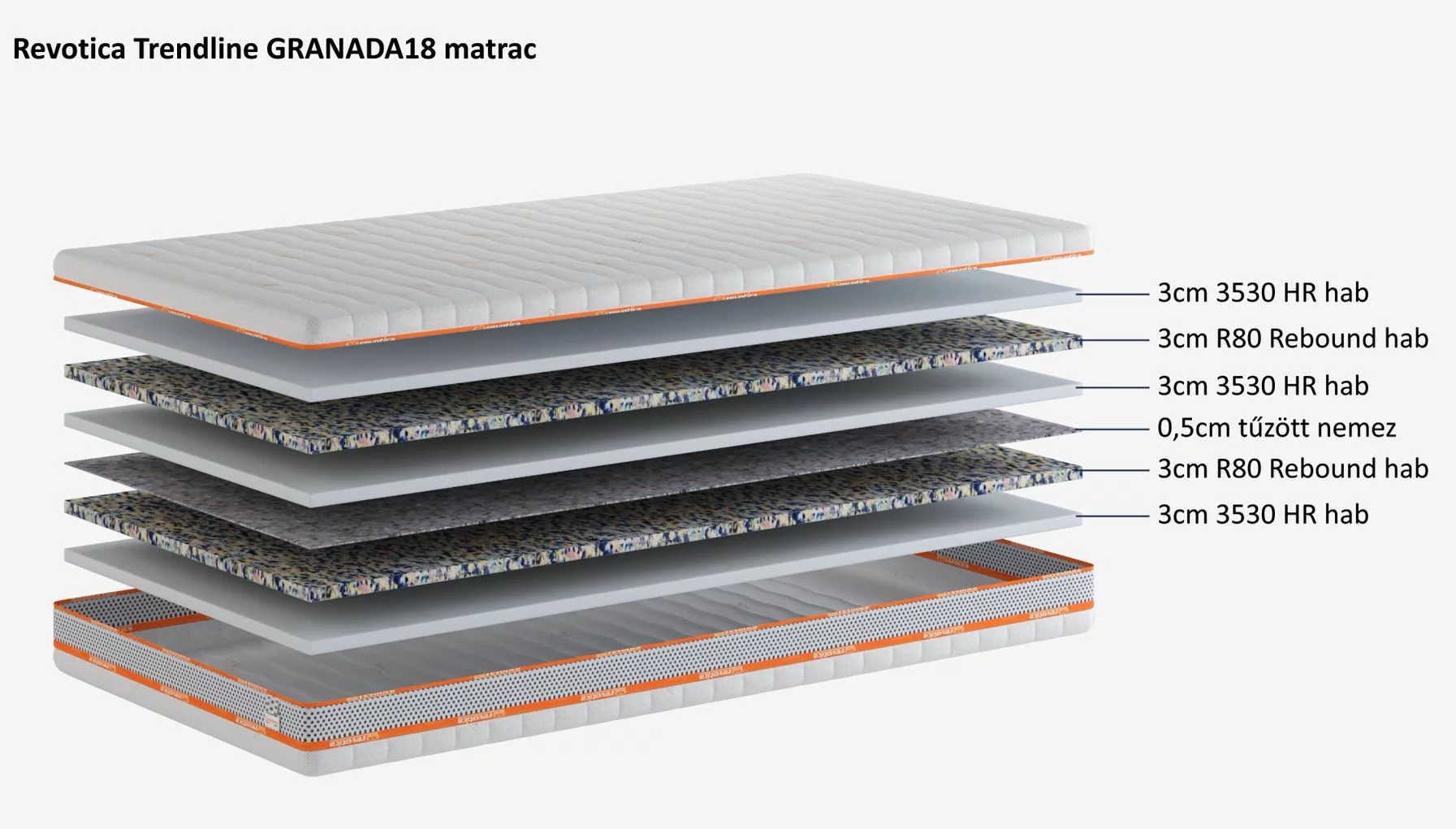 18 cm magas matrac: szendvicsszerkezetű hideghab + rebound