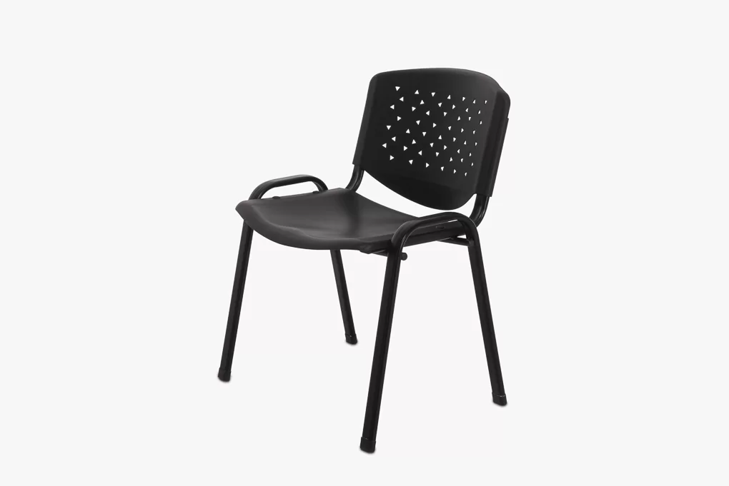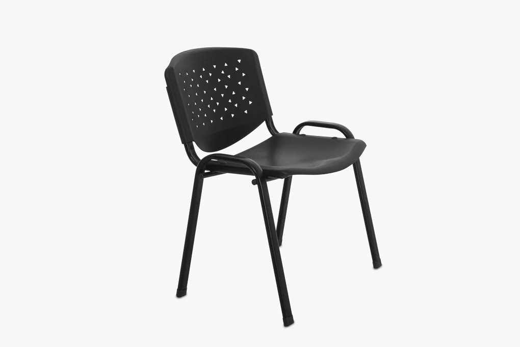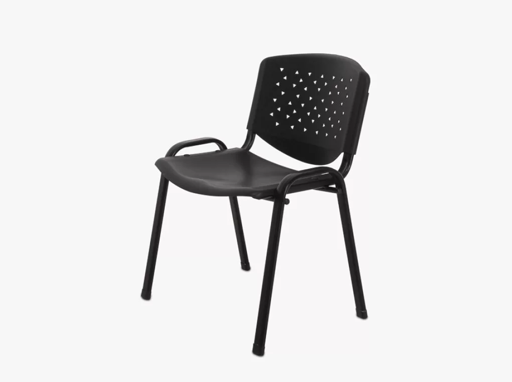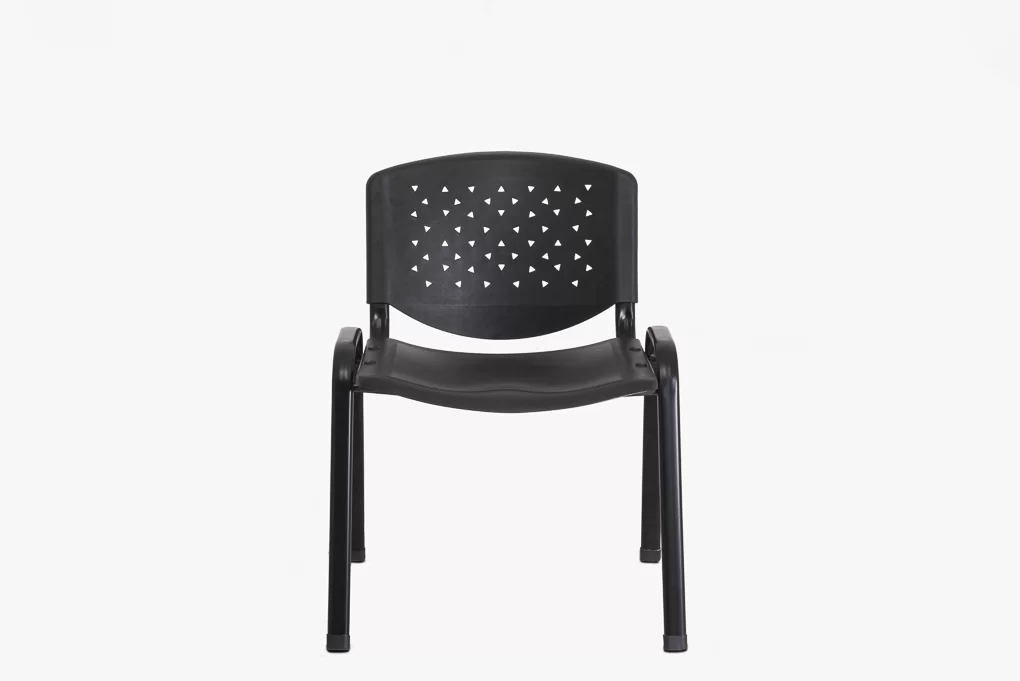 Fekete tárgyalószék műanyag ülő- és hátlap, fém váz és lábakkal.